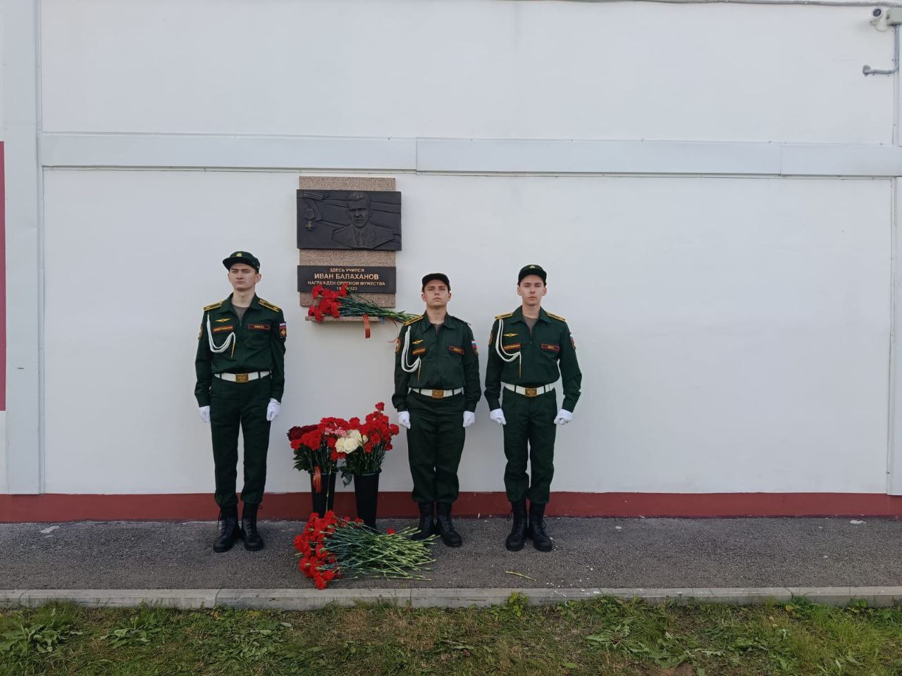 Курсанты ВУЦ ИГУ стояли в почетном карауле во время церемонии, отдавая дань уважения герою. Мемориальная доска заняла место на здании школы №31, где учился Иван Балаханов.